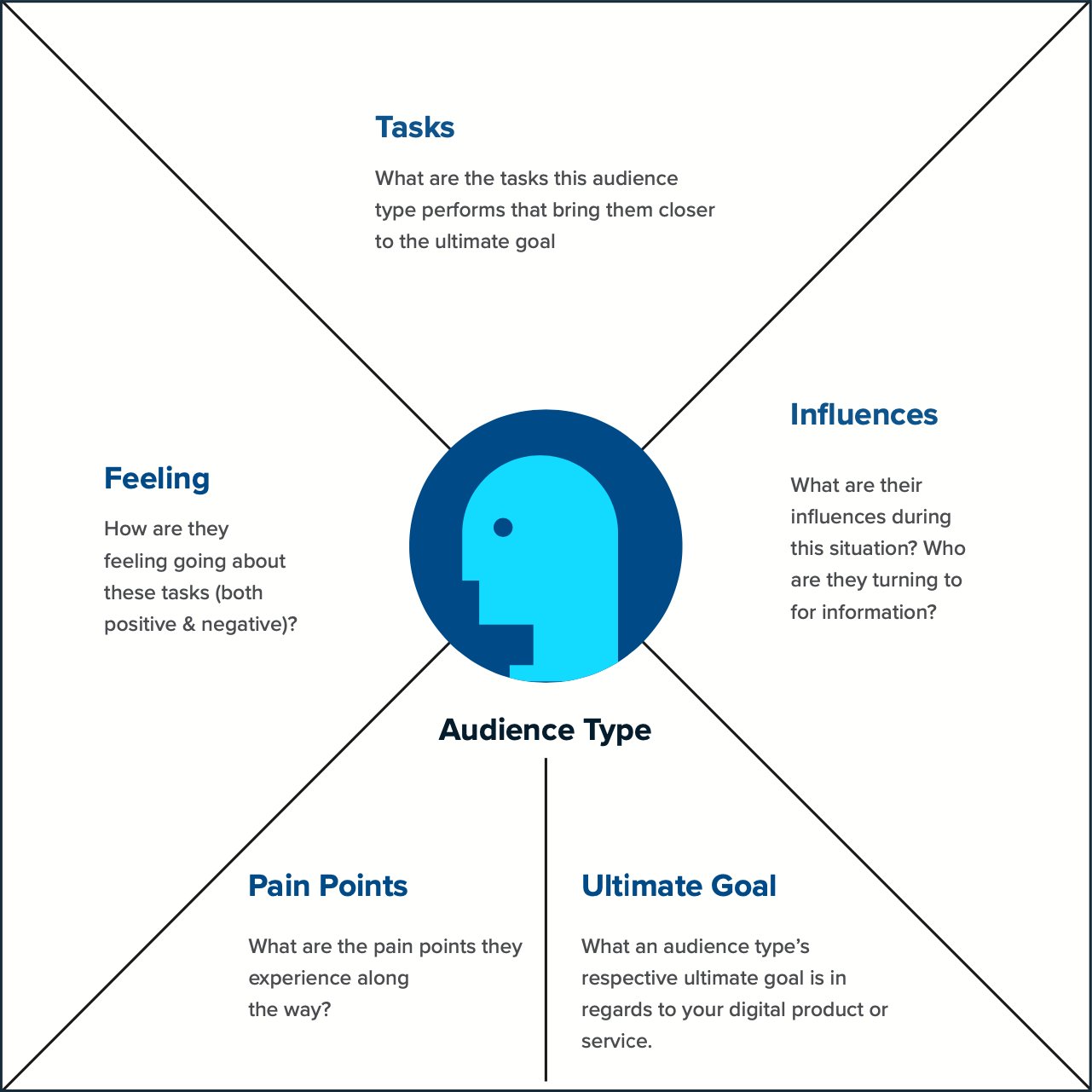 Empathy mapping while a simple tool can offer huge results. It also doesn’t have to take that long to see results and build alignment within your stakeholders. Empathy mapping externalizes knowledge about a specific audience in order to create a shared understanding of their needs, what they are thinking, feeling, seeing, hearing, and doing.