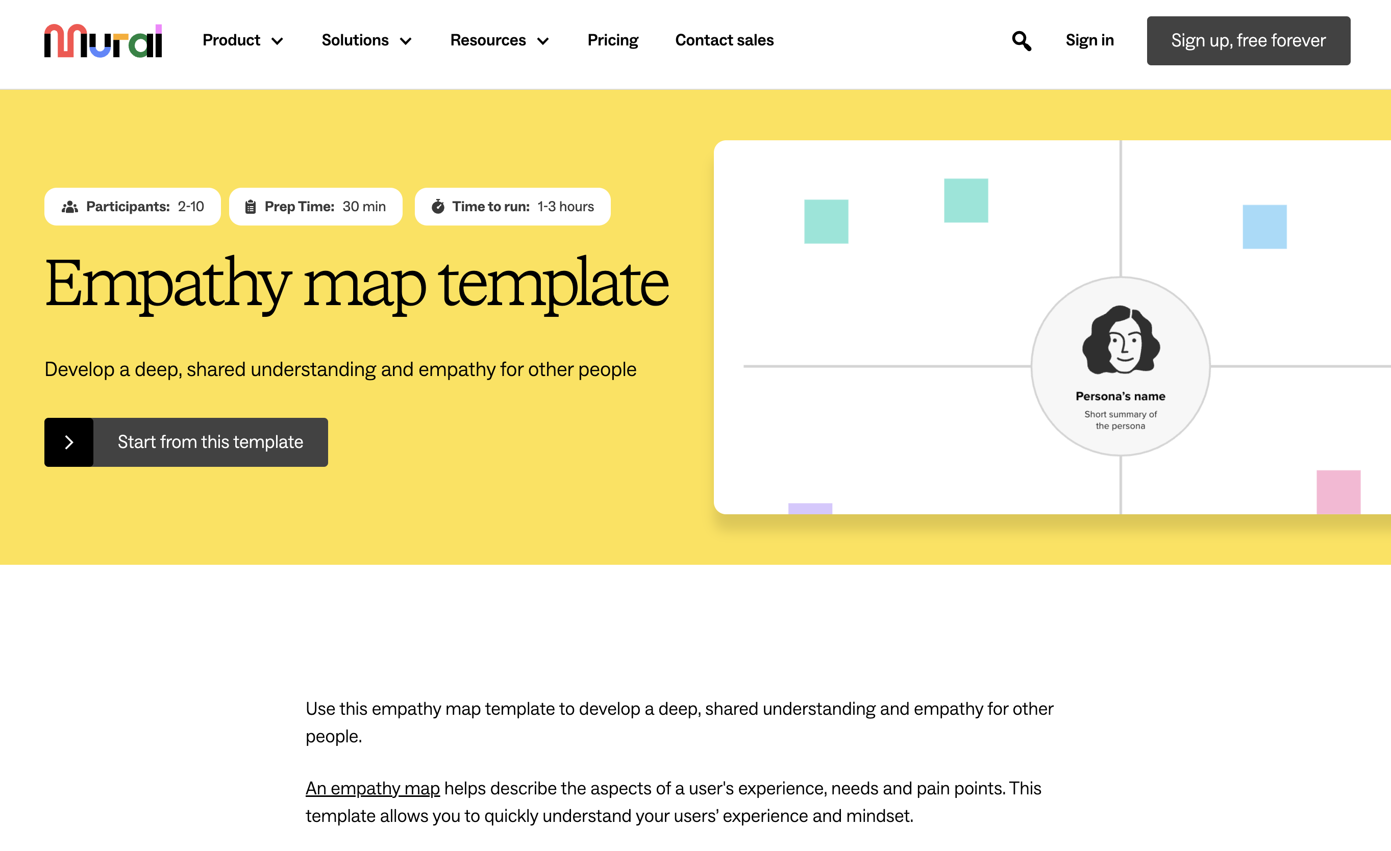 - Some tools like Mural offer pre-made empathy map templates to get started quickly.