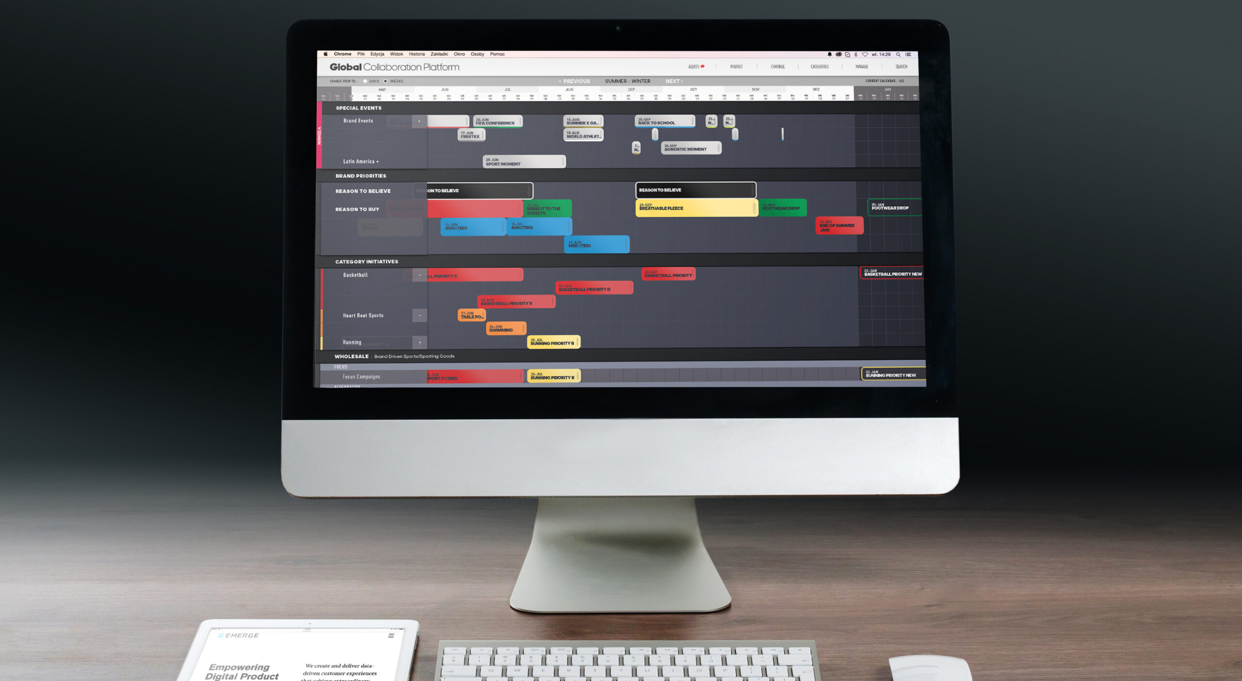 This global sportswear marketing team wanted a fresh perspective and a team with expertise in solving complex user experience and data challenges. They chose to collaborate with Emerge. We worked together to identify all of the people, processes, and systems that the project needed to integrate for success. Together, we defined, created, and delivered a groundbreaking unified omnicalendar and communications platform. Ultimately, improving collaboration, tracking of initiatives, and becoming a centralized source of truth to manage all essential information.