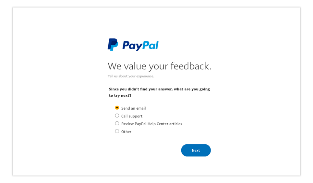 Another more commonly seen contextual feedback module example is when a customer navigates through a specific sequence to resolve a pain point. Getting feedback after this sequence can be exceptionally insightful in gauging how your customer is feeling about both your business and the product they’re using.